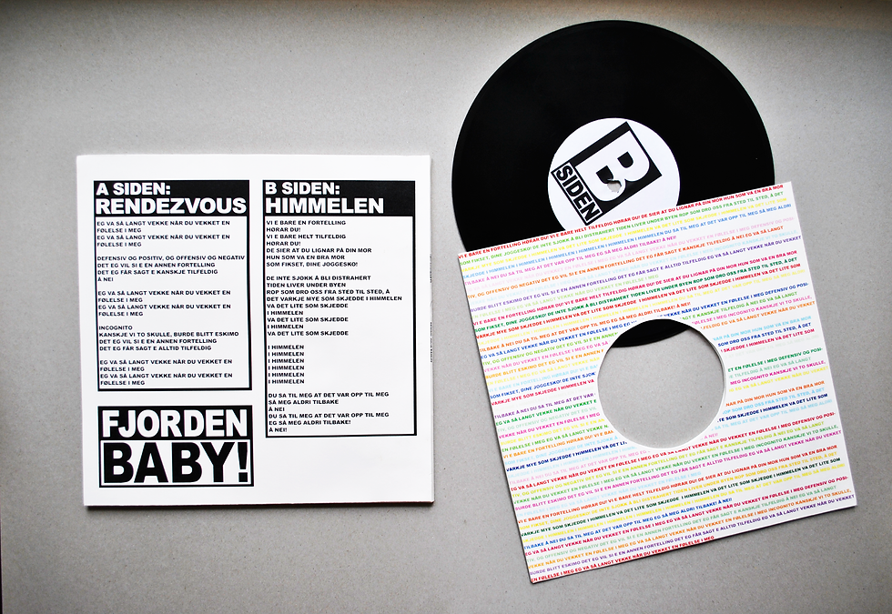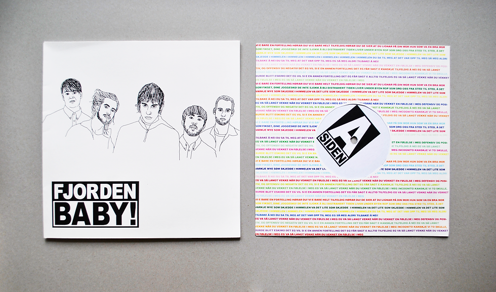 Vinyl record cover, inner cover and labels for a band from my hometown Bergen in Norway, called “Fjorden Baby!” The design was inspired by my interpretation of the music, the bands expression and lyrics.